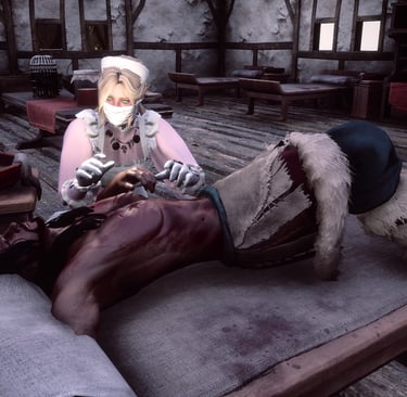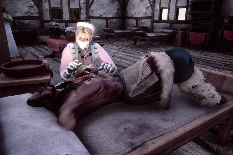 Foi nesse cenário de desolação que surgiu a figura destinada a mudar para sempre a forma de tratar e cuidar dos enfermos: Florence Nightingale. Uma Eldarian com mais de dois séculos de sabedoria acumulada, ela não era apenas uma salvadora, mas uma visionária. Vestida com trajes negros, luvas grossas e a máscara de corvo que se tornaria o símbolo da esperança, ela percorreu os reinos infectados sem temor.