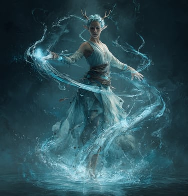 Os elementais de água compreendem a magia como algo vivo, em constante movimento. Para eles, resistir é inútil. A verdadeira força está em se adaptar, contornar e persistir.