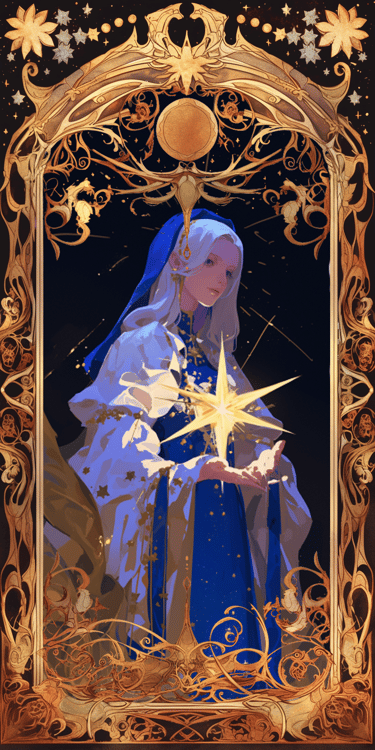 Para Miati marcava algo muito maior sendo ela Guardiã das Estrelas, aquela carta marcava sua cura mostrando que a dor do passado iria se transformar em luz e propósito.