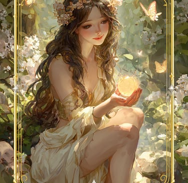 Filha de Alaja e Neterus, nasceu em uma noite de lua vermelha que foi marcada com o surgimento de uma estrela possível de se ver até mesmo durante o dia, tão bela quanto sua mãe, tão delicada quanto seu pai. Ela se tornou a Deusa menor das Artes e da Beleza.